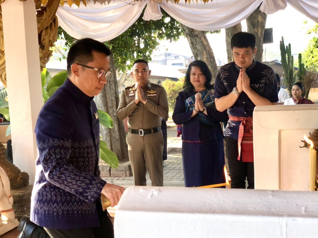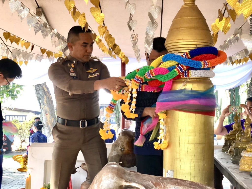 พ.ต.อ.ณัฐพงษ์ ฉวีทอง ผกก.สภ.ศรีธาตุ ร่วมพิธีบวงสรวงศาลหลักเมืองอำเภอศรีธาตุ